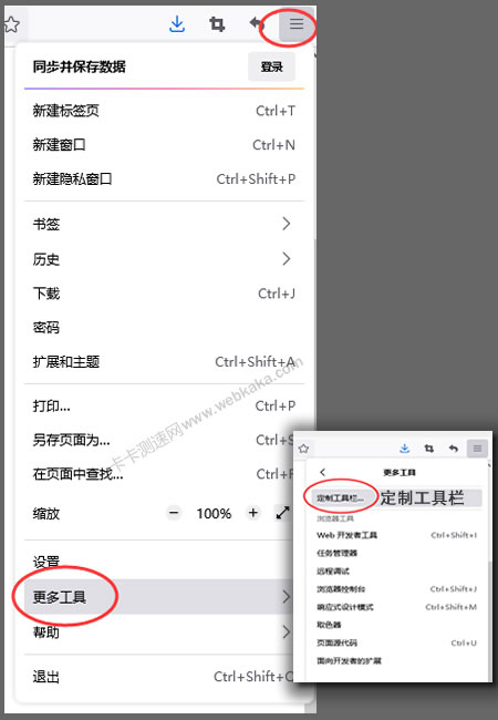 點擊“應(yīng)用程序菜單”-“更多工具”-“定制工具欄”。