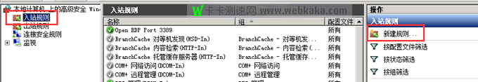 2、點擊左側“入站規則”,然后點擊右側“新建規則”。