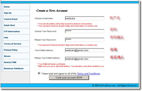 NoFeeHost的注冊是非常簡單的,用起來也十分輕便。