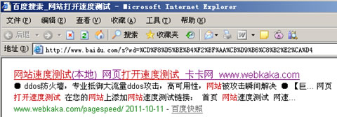 更改欄目鏈接之后,我每日都會用“網站打開速度測試”的關鍵詞查詢,看看網頁的快照及排名情況。但是百度一直沒有變化,包括鏈接地址還是更改前的pagespeed而不是更改后的webspeed,快照也是10月11日,而排名也停止不動,不升也不降。