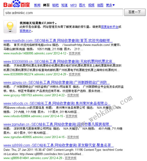這種遞級關系在百度搜索排名中表現得更為明顯,因為,百度是把內頁的權重統統集中到首頁里的,內頁的權重很難比得上與之具有相同關鍵詞的網站首頁。舉個例子,在百度搜“網站速度測試”,webkaka排在前面的頁面是網站首頁,而不是webcheck.aspx這個內頁;但Google似乎更聰明些,它排在前面的是webcheck.aspx這個用戶真正需要的頁面。只可惜,Google的搜索量現在幾乎是可以忽略了。