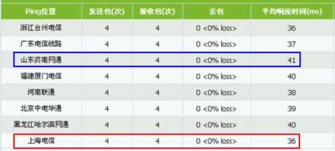 從網站全國各地PING測試的數據來看,PING值最大的是山東濟南網通,為41ms;PING值最小的是上海電信和浙江電信,為36ms。從整體來看,電信線路的PING值與網通線路的PING值相差不大,說明之前的南北線路瓶頸問題得到了解決。