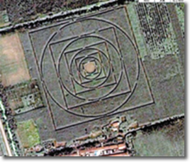 據中國經濟網報導,于先生是一名地理愛好者,半個月前他使用谷歌地球的軟件,觀看衛星拍攝到的世界各地的圖片時,無意中瀏覽西青區的地貌時,發現一片農田間出現了奇怪的圖案。圖案最外圍是一個正方形,里面套著一個圓圈,圓圈又套著一個正方形……他當時便想到,這就是被稱之為“麥田怪圈”的奇怪圖案。