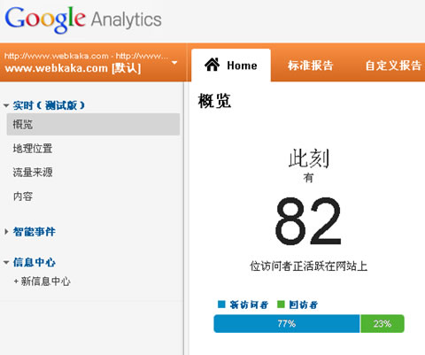 現在主流的網站流量統計都有網站在線人數的統計,不過,google分析比其他統計例如百度統計、 cnzz統計、51la統計的驕人之處是,google分析自動刷新更新在線人數數字,不需要我們手動刷新網頁。這一點,目前國內沒有哪家的統計網站做到。