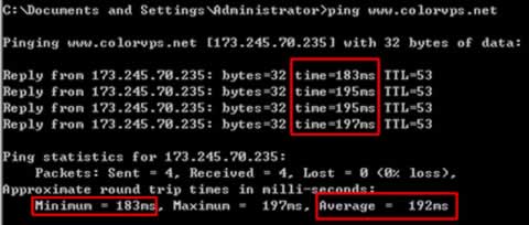 軍刀M虛擬主機的速度我一直覺得是很不錯的,如果你不信,你可以訪問這個網站(http://www.colorvps.net),它就是使用的軍刀M虛擬空間。我在廣州使用2M ADSL電信寬帶,對其ping測試,結果最低值達到了183ms,平均值達到192ms。如下圖: