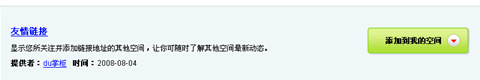 2、找到友情鏈接模塊后,如上圖,點擊右邊的“添加到我的空間”圖片按鈕。這時會提示是否需要調整模塊位置,默認是顯示在你的空間主頁左上方。