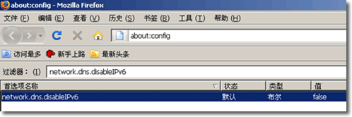 2、在過濾器里輸入:network.dns.disableIPv6,出現(xiàn)如下界面: