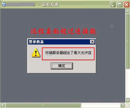 今天管理一臺服務器,遠程連接時帳號密碼都輸入完后,點連接后彈出一個“終端服務器超出最大允許連接數”的提示窗口。