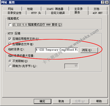 IIS設置GZip時,有個臨時目錄可以自定義,當然也可以用默認的路徑:%windir%\IIS Temporary Compressed Files。臨時目錄是存放GZip壓縮時IIS自動生成的一些文件,可能會占用幾十兆的磁盤空間。