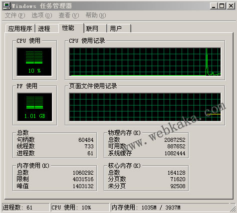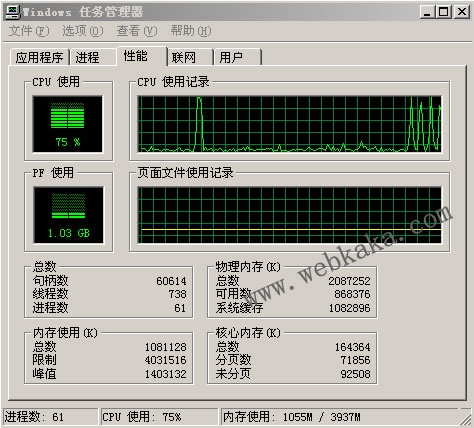 asp執(zhí)行程序時cpu峰值升到58%,使用內存顯示是1.06GB。