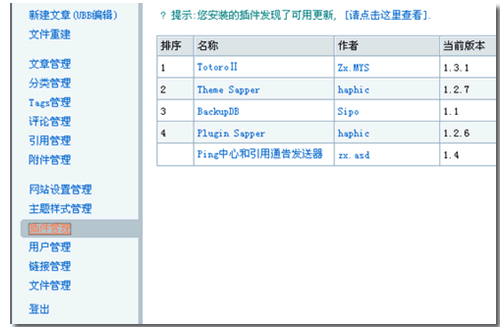 1)點擊導航“插件管理”,出現如下界面,