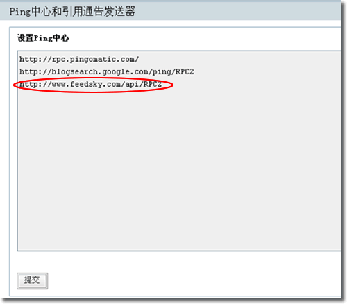 3)在文本框里輸入:http://www.feedsky.com/api/RPC2,然后點擊“提交”按鈕。