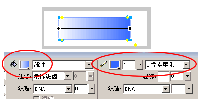 1、畫一個圓角矩形,選擇線性填充,邊寬為1