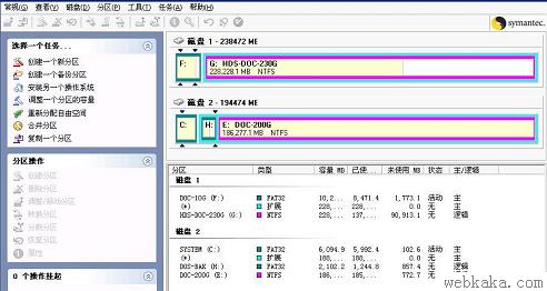 利用PQMagic分配空間,本來我以為很容易就能做好這個事情,因為我以前已經使用過這個工具來分區了,操作還算熟悉。怎知我用了一天的時間,說起來真的有些不值。原因是我用的系統是windows2000server版。