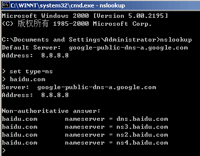 nslookup命令的使用