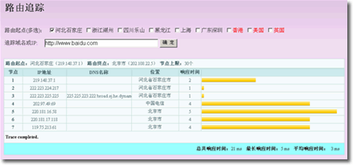 webkaka.com新增Traceroute功能,可以檢測網站在各地訪問的節點路由情況。