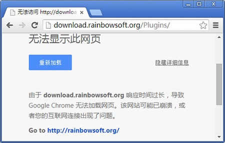 為什么這個插件出問題了呢?帶著這個問題,我查看了這個插件的源代碼,發現每次打開頁面,這個插件都會自動檢測,并去請求一個來自官網的下載鏈接地址:http://download.rainbowsoft.org/Plugins/,然而,這個官網的地址不知什么原因已經連不上了,這就是“等待”時間過長的真正原因。