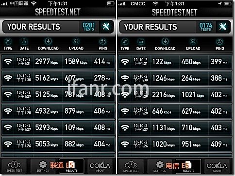 國慶長假利用出行的機會,在不同的地點進行了補充測試,分別使用兩部 iPhone 4 進行同時間的對比測試: