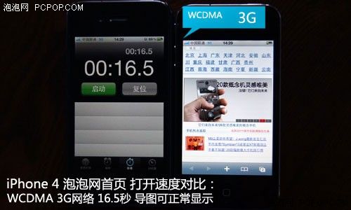 WCDMA 3G網絡環境下,iPhone 4打開手機頻道手機平均時間為16.5秒。