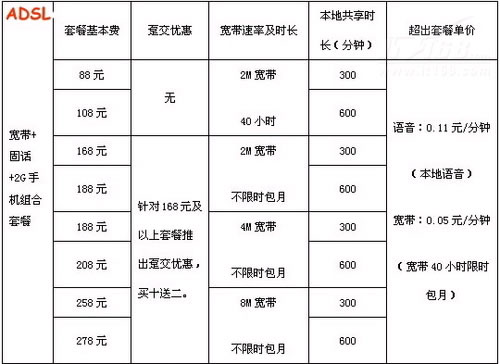 北京ADSL電信寬帶包年資費解析: