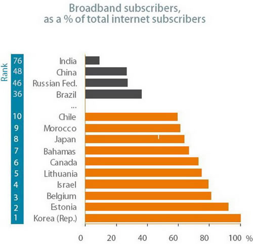 然而,各國寬帶發展差別大,世界上網速最快的國家比網速最慢的國家平均網速快上百倍。