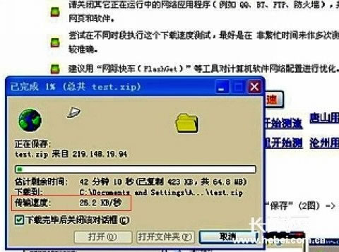 4兆電信寬帶燕趙星空測速下載速度竟是26k左右