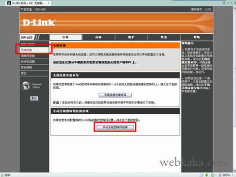 登陸路由器配置界面后,點(diǎn)擊“無線安裝”-“手動無線因特網(wǎng)安裝”