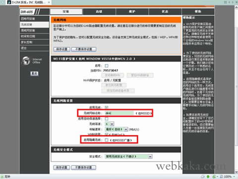趁熱打鐵,修改完SSID后,將下方的“啟用隱藏?zé)o線”勾選上。這樣的話,一般我們使用Windows自帶無線管理程序再搜索無線網(wǎng)絡(luò)時就不會搜到您的無線網(wǎng)絡(luò)了。