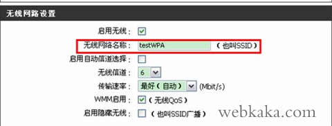 修改SSID名稱為testWPA,之所以修改SSID,可以避免與使用同類產(chǎn)品的SSID沖突導(dǎo)致無線網(wǎng)絡(luò)連接受阻,并且可以避免攻擊者輕易猜出SSID。