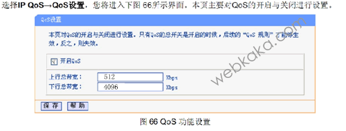 1、你要開啟QoS設置,這里在“開啟QoS”前打上勾,然后“上行總帶寬”甜512,“下行總帶寬”填4096。