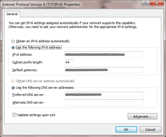 4、填入已經找到的IPV6相關內容(獲取地址舉例:getv6.shu.edu.cn)