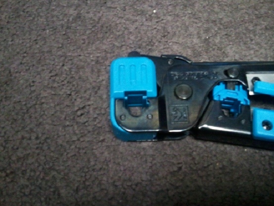 這也是一處容易出現錯誤的地方。使用壓接工具時,RJ 45連接器的引腳1位于底部的左側。如果從壓接工具頂部來看RJ 45連接器的話,引腳1是在連接器的右側。