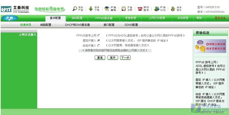 登錄到Web界面后可以通過配置向導一步步來完成自己所需要的各項管理功能。值得注意的是,用戶可以通過配置界面上方的官方鏈接登錄艾泰官網相應專區來獲得技術支持。另外,用戶可以下載艾泰HiPER 510的PDF文檔來獲得詳細的配置說明。
