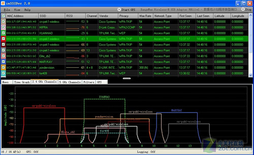 除了常見上述功能,inSSIDer還提供了新聞報道,網絡過濾,GPS等附加功能,感興趣的用戶可以自己嘗試。