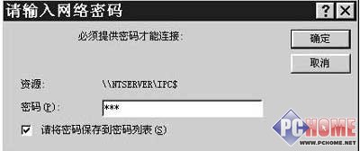 若Guest用戶設有密碼,其它Windows工作站訪問WinXP計算機時會提示輸入密碼,此時輸入Guest用戶的密碼也可以進入WinXP計算機。輸入密碼時可選中下面的“請將密碼保存到密碼列表”項,下次進入時便不再提示密碼(除非該用戶密碼已更改,圖6)。當然,若是在Windows工作站上已經設置為登錄域,并以某一域用戶登錄到域中則不會受到為Guest用戶密碼的影響。