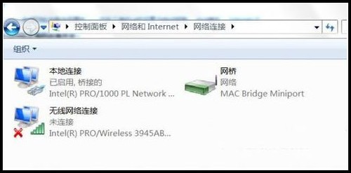 網絡與共享中心——更改適配器設置,進入網絡連接界面——(重中之重)拔掉連接到筆記本上的有線網卡網線——按下Ctrl,同時選中”本地連接“和”無線網絡連接“ ——右鍵單擊其中任意一個選擇橋接——等待出現網橋圖標以后,插上網線