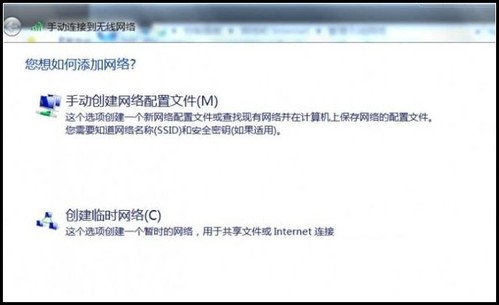 網絡與共享中心“——單擊”管理無線網絡“——單擊中間的”添加“——在新打開的窗口選擇”創建臨時網絡“點擊”下一步"