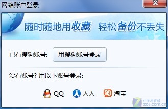 在這一版中,用戶可以用其他賬號關聯到搜狗瀏覽器中,這樣無需繁瑣注冊過程,用其他賬號一鍵登錄瀏覽器賬戶。目前搜狗瀏覽器支持的關聯的賬號有QQ賬號、人人網賬號以及淘寶網賬號來登錄瀏覽器賬戶系統。