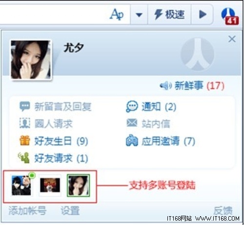 ▲ 360極速瀏覽器人人網提醒功能