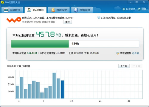 360"3G小助手"支持各類流量套餐,可以防止流量超額