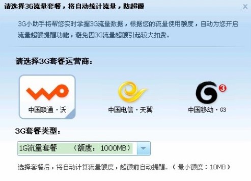 選擇3G流量套餐開啟3G流量統計