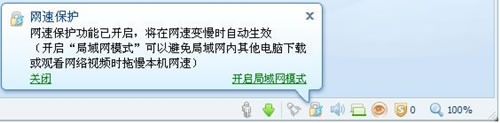不過以上只是本機的保護,如果在局域網環境中,怎么辦?新版網速保護增加了“局域網模式”。同樣單擊右下角鎖狀圖標,彈出如圖3所示的氣泡框,點擊“開啟局域網模式”即可。當你每次需要訪問網頁時,搜狗瀏覽器會通知局域網內其他電腦暫時釋放一些網速,以便你流暢打開網頁。
