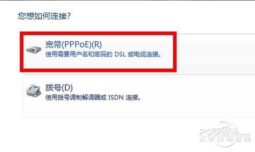 第四步,選擇“寬帶(PPPoE)”。