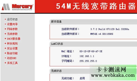 水星MW54R無線寬帶路由器支持IEEE 802.11b/IEEE 802.11g無線標準,并且也內置了交換機和防火墻功能,目前有商家報價60元,性價比很高,2-3臺終端使用為宜,推薦一般家庭用戶購買,有興趣的朋友不妨在當地經銷商那里咨詢一下。