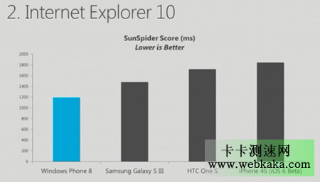 此外Windows Phone 8的IE10的JavaScript和HTML5功能也得到了巨大提升,根據(jù)SunSpider基準(zhǔn)測(cè)試,JavaScript性能超過了剛剛發(fā)布的iOS 6。