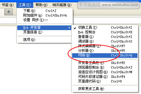 第一,打開Firefox瀏覽器,接著打開web開發(fā)者工具(工具->Web開發(fā)者->網(wǎng)絡(luò))