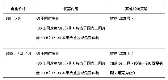 近日北京聯通推出了寬帶、3G上網卡和WLAN綁定的套餐,用戶交198元可辦理4M寬帶套餐,套餐內包含600M上網流量,并可使用聯通WLAN無線網絡。
