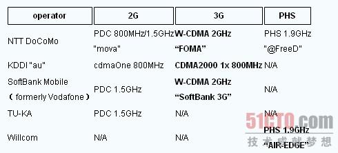 下表是對日本的運營商網絡的一個較為詳細的描述。
