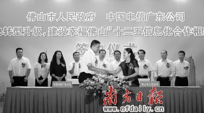 佛山市政府副市長王玲與廣東電信副總經理陳志然代表雙方簽訂協議。雙方商定,廣東電信將與佛山合力推進信息技術和互聯網在政務、商務、生產、生活、教育、文化等各領域的廣泛應用,在更廣領域、更高層次和更長時期內建立全面戰略合作伙伴關系。