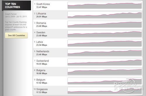 據阿卡邁互聯網分析公司稱,目前美國的網速甚至落后于拉脫維亞和羅馬尼亞,而韓國的平均網速卻超過了世界排名第二的香港和排名第三的日本。
